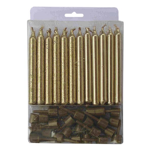 MC Свечи Золотые с блестками 24(12+12)шт с держателями 6см
